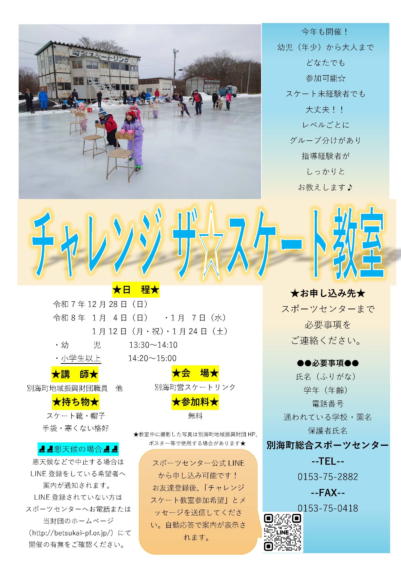 令和7年度「チャレンジ・ザ☆スケート教室」の開催について